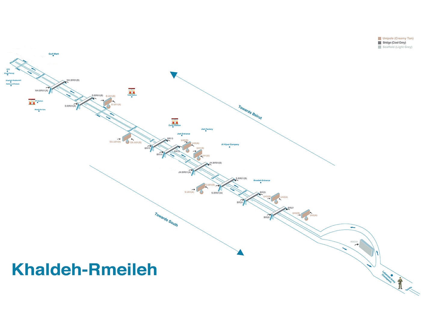 Aim Media diversity of locations in South Lebanon, is a splendid strategy to connect and communicate with enormous number of clients, through availability of several bridges, scaffold, unipoles, megapoles, minipoles..etc., at various prime locations!