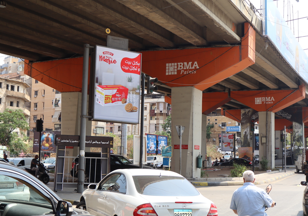 This popular and busy residential / shopping area is a primary location for suburban exposure. Aim Media allocated 10 mupis networks each consisting of 11 faces, are far by the most attainable advertising tool to reach the majority of people across Dahieh and it's ambient. Our distiguish panels such as Bridges, minipoles, wall signs, unipole, led screen and rooftop, covering the populated suburbs of southern Beirut, situated in key sites to ensure targeted coverage and distributed strategically in basic regions:  Hadi Nasrallah Blv., Mreijeh, Sfeir "the high traffic area", Mouawad, Tayouneh "the shopping area", Mar Mikhael, Gallery Semaan "the liaison between Mount Lebanon and southern Beirut"…etc.